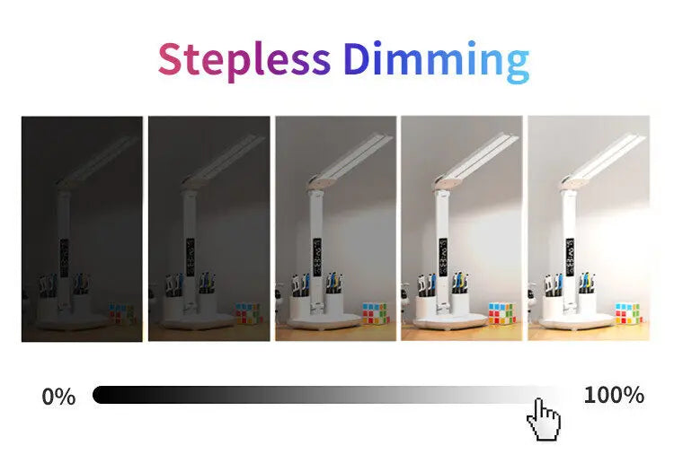 LED Clock Table Lamp USB Chargeable Dimmable Desk Lamp 2 Heads 180 Rotate Foldable